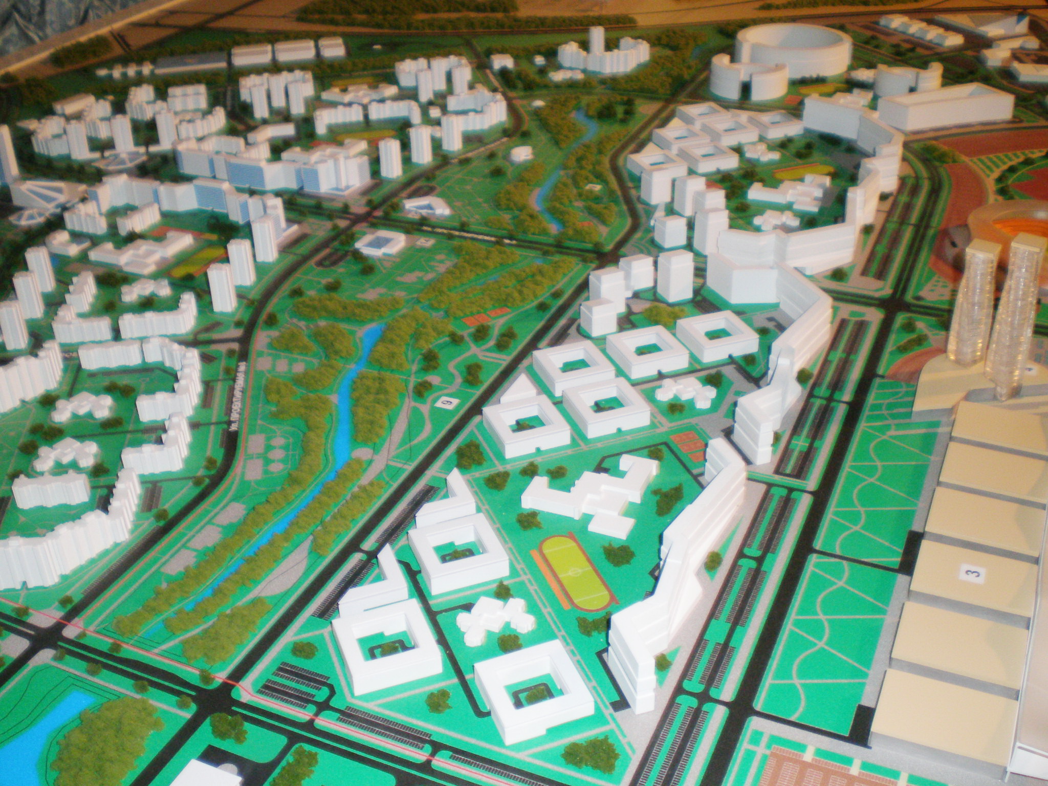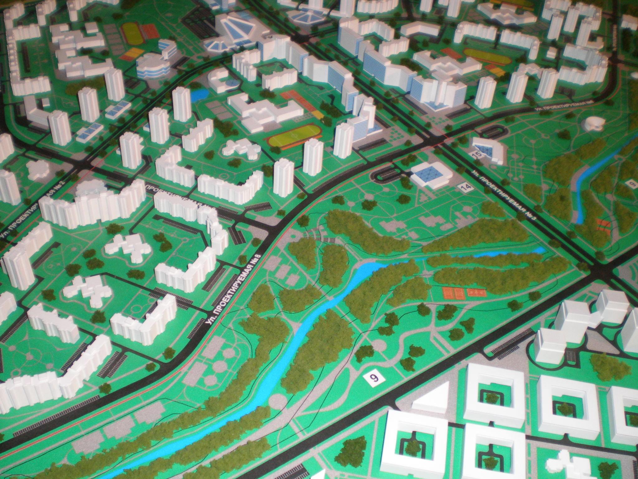 Solche Entwürfe eignen sich perfekt für Präsentationen und Ausstellungen. Das Bebauungsterritorium kann auf einem Tisch präsentiert werden und erfüllt so weit wie möglich die vor dem Modell gestellten Aufgaben zur Demonstration von Objekten, dient als Hilfestellung auf der Suche nach einem Investor oder als Element der Innenausstattung.